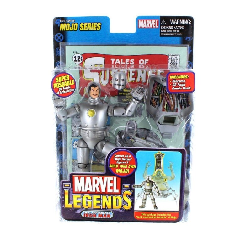 This Toy Biz 1st Appearance Iron Man figure features great poseability with over 30 points of articulation and includes part of the Mojo Build A Figure.