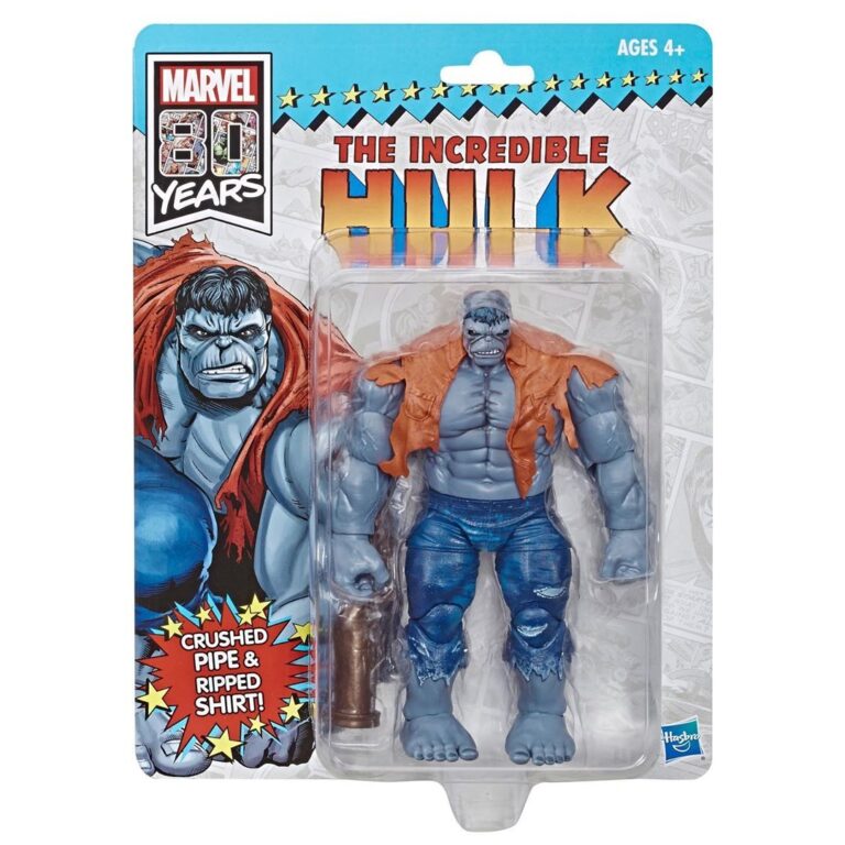 This exclusive Incredible hulk figure that stands 8.5 inches tall and includes the classic grey design of the muscle-bound behemoth that first officially appeared in The Incredible Hulk #1 in May 1962. Includes crushed pipe accessory, and ripped shirt which can be removed.