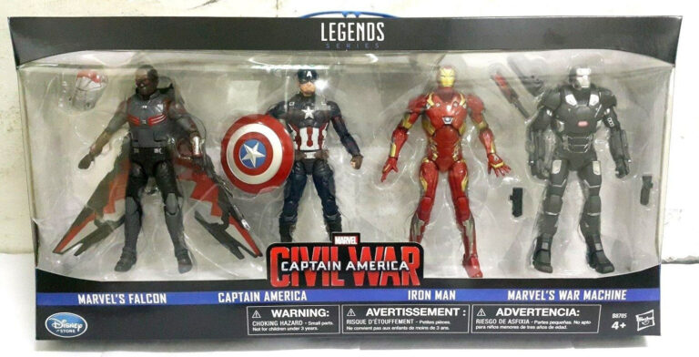 This Marvel Legends 4-pack is a Disney Store exclusive and includes Falcon, Captain America, Iron Man, and War Machine based on their MCU look from Captain America: Civil War.
