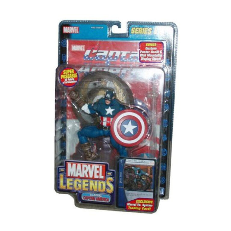 This Toy Biz Classic Captain America figure features great poseability with over 30 points of articulation and is part of Marvel Legends Series 8.