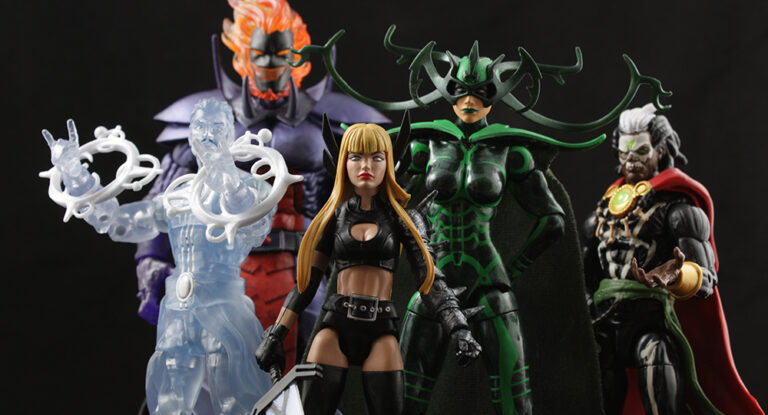 SDCC 2015 Doctor Strange Marvel Legends Figure Set featuring Doctor Strange, Brother Voodoo, Hela, Magik, and Dormammu.