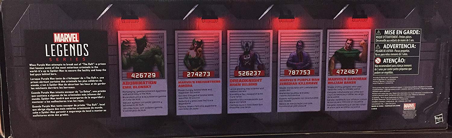 When Purple Man attempts to break out of The Raft a prison that houses some of the most notorious criminals in the world its up to Spider-Man to secure the facility and keep the bad guys behind bars.This 6-inch, 6-figure collection of Marvel Legends figures includes 5 of the baddest villains in the Marvel Universe, so kids and collectors alike can imagine the epic showdown of Spidey versus some of the worlds most powerful inmates.