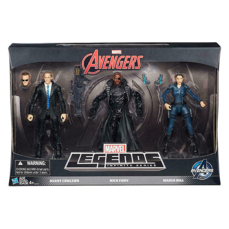 Marvel Legends SHIELD 3-pack Toys R Us Exclusive featuring Nick Fury, Maria Hill, and Agent Coulson.